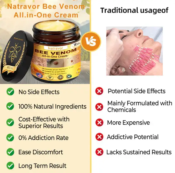โ ย Scientifically Formulated:ย The formula of Natravorโข Bee Venom All-in-One Creamย ย is scientifically developed to maximize its effectiveness in promoting skin rejuvenation and enhancing your overall appearance.