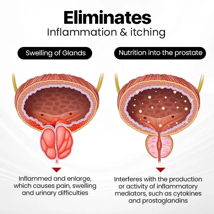- Reduces Inflammation:Quickly relieves inflammation in and around the prostate, easing symptoms of prostatitis and BPH, bringing comfort back to your life.